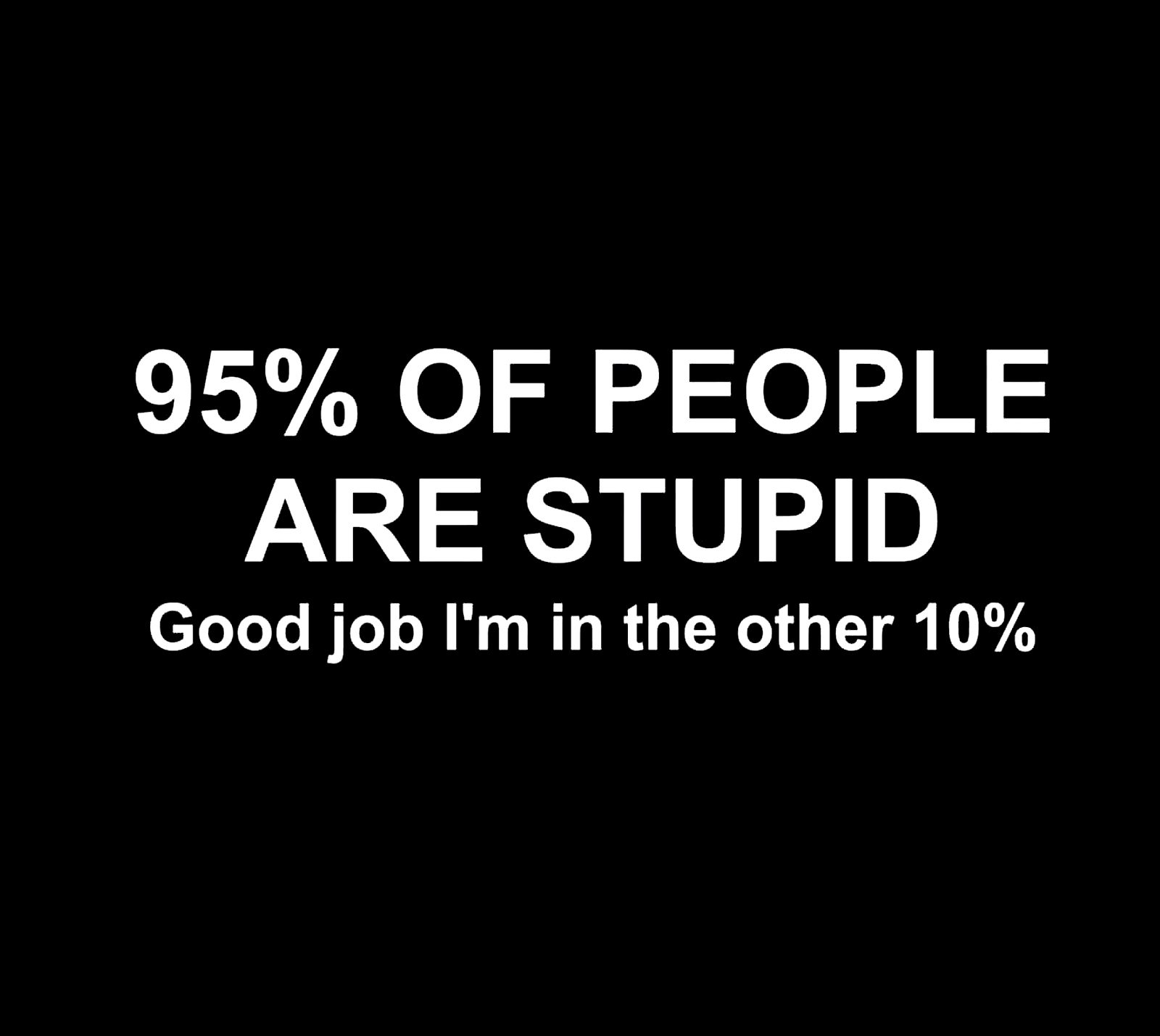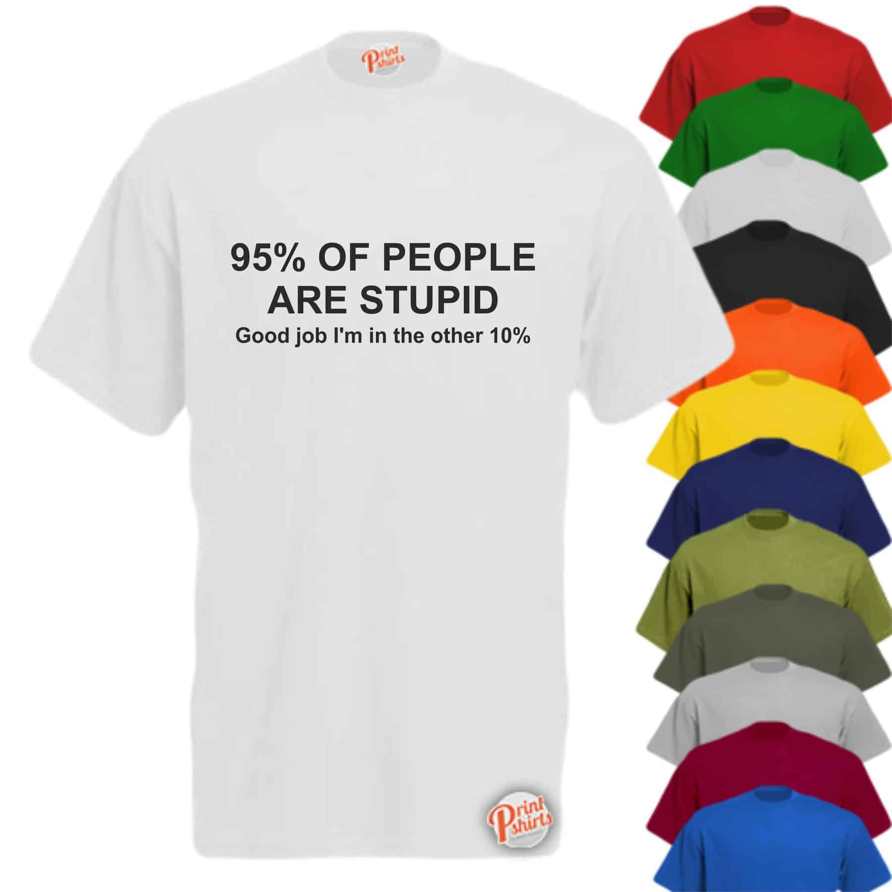 95% of people are stupid! Take a look at this funny T-Shirt ideal for those with a great sense of humour! Put on this hilarious and humorous printed top and let the good times roll! T-shirts for all men and women. A cheap and affordable price! Perfect for people of all ages. Available in multiple colours. Available in all years. Crack an silly joke or two, be greeted with mischievous giggles in a tee to match! Whether it’s at a family gathering, lunchtime at work, or just down the local pub with the lads, this tummy tickling styled top is bound to make people laugh out loud uncontrollably! Get your, “95% of people are stupid!” Printed t-shirt right this second! So make sure you don’t miss out!