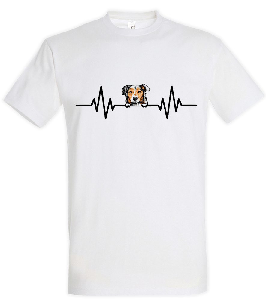 Introducing our adorable printed dog-themed t-shirt, perfect for dog lovers of all ages! This top is a Aussie Shep Dog Heartbeat T-Shirt. Made from high-quality, soft, and comfortable fabric, this t-shirt features a vibrant and playful design showcasing this specific breed of dog in a cute and charming pose, poking out of a printed heartbeat pulse on your tee. The eye-catching print is sure to turn heads and spark conversations about your love for dogs. Whether you’re out for a walk, lounging at home, or running errands, this t-shirt is a must-have for any dog enthusiast. It’s available in a range of sizes to ensure a perfect fit and makes a paw-some gift for yourself or fellow dog lovers. So, show off your doggy devotion in style with our delightful Aussie Shep Dog Heartbeat T-Shirt.