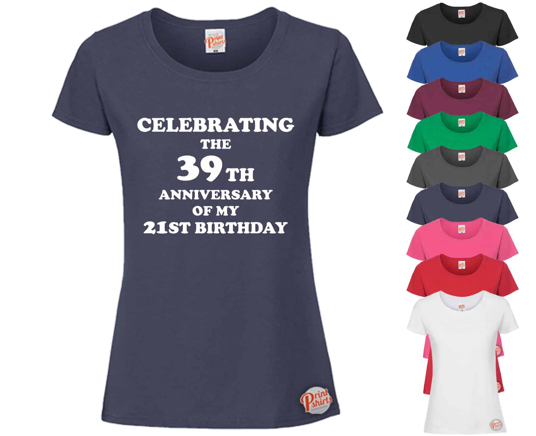 (Ladies) Celebrating the 39th anniversary of my 21st birthday! Funny T-Shirts ideal for birthdays! T-shirts for females on their special day. A cheap and affordable price! Perfect for people of all ages. Available in multiple colours. Available in all years. Spend the big day in style! Make your birthday one to remember in this high quality, funny tee! Buy yours! Get your (Ladies) Celebrating the 39th anniversary of my 21st birthday printed t-shirt right now! Make sure you don’t miss out! 100% Cotton T-Shirt Designed by Printshirts. We only use premium garments which are professionally printed and dispatched. To preserve the life of your garments we recommend washing inside out at 30 degrees and would always iron inside out. We offer fast UK delivery on t-shirts and hoodies sold at cheap and affordable prices. We have other wording and styles available, if you are interested then please click here.