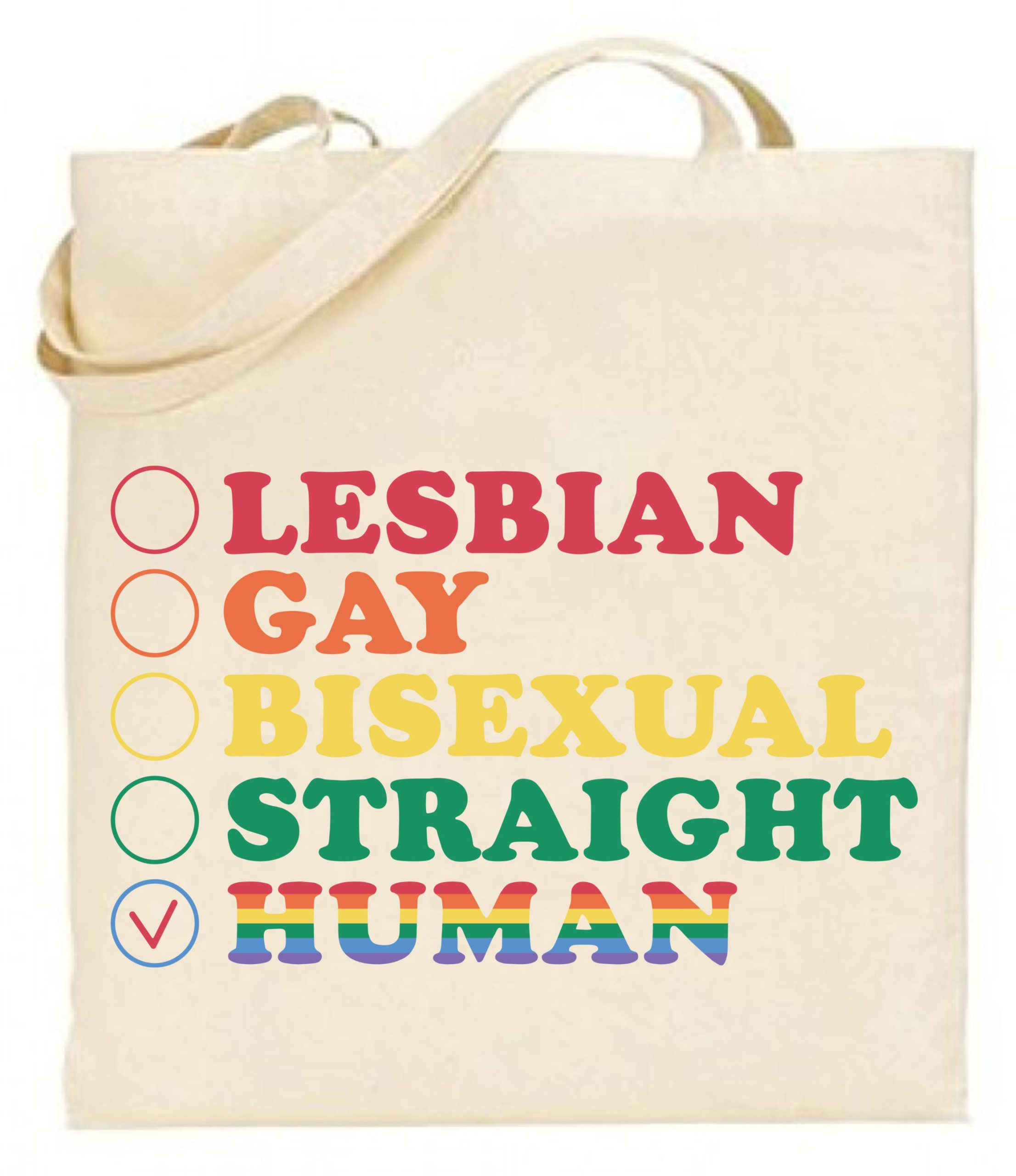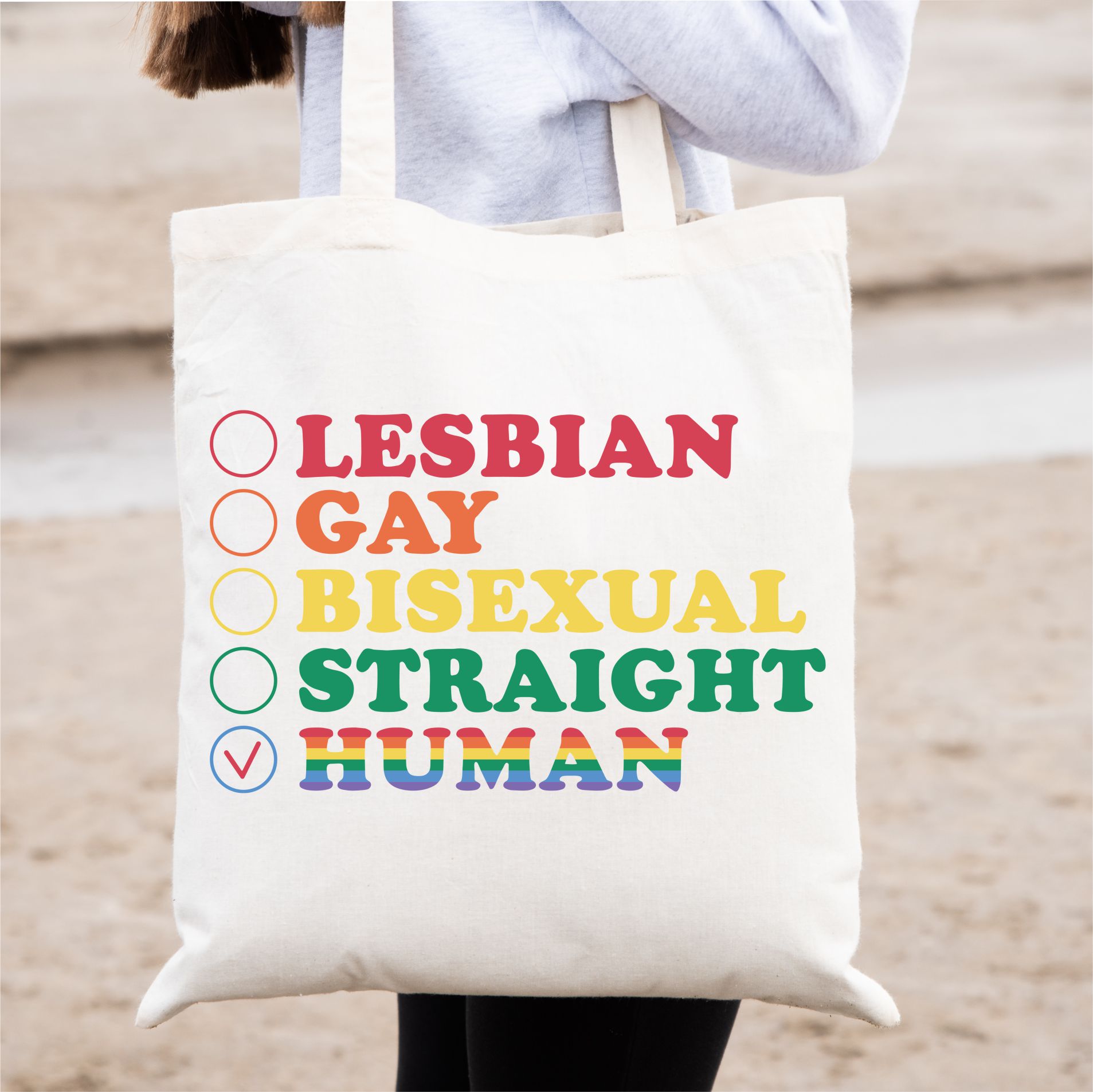 Human First Pride Tote Bag – Rainbow Equality Canvas Shopper with LGBTQ+ Inclusive Design
