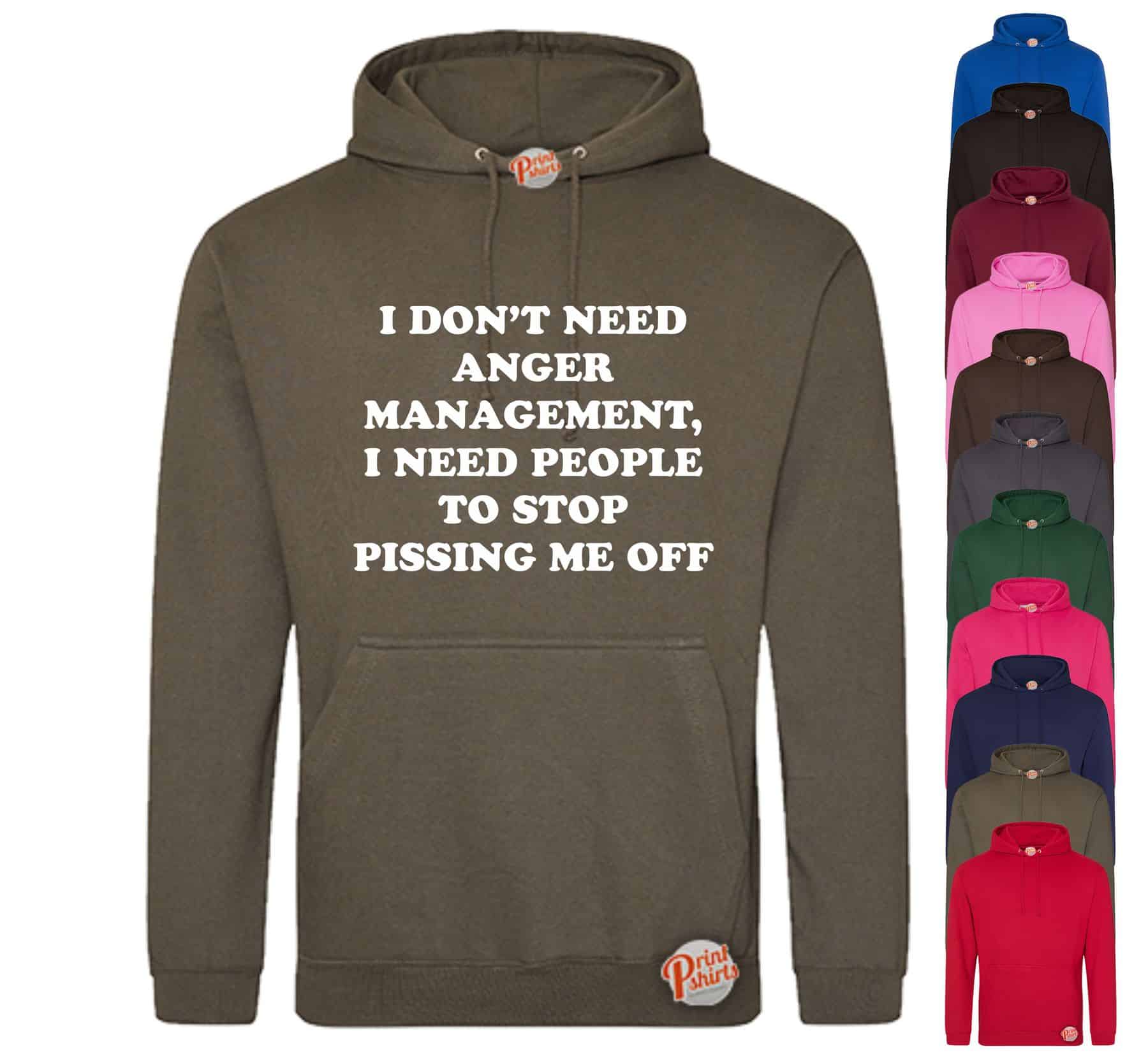 (Hoodie) I don’t need anger management! Take a look at this funny jumper ideal for those with a great sense of humour! Put on this hilarious printed top and let the good times roll! Hoodie for all men and women. A cheap and affordable price! Perfect for people of all ages. Available in multiple colours. Available in all years. Crack an silly joke or two, be greeted with mischievous giggles in a top to match! Whether it’s at a family gathering, lunchtime at work, or just down the local pub with the lads, this tummy tickling styled top is bound to make people laugh out loud uncontrollably! Get your, “(Hoodie) I don’t need anger management!” Printed jumper now!