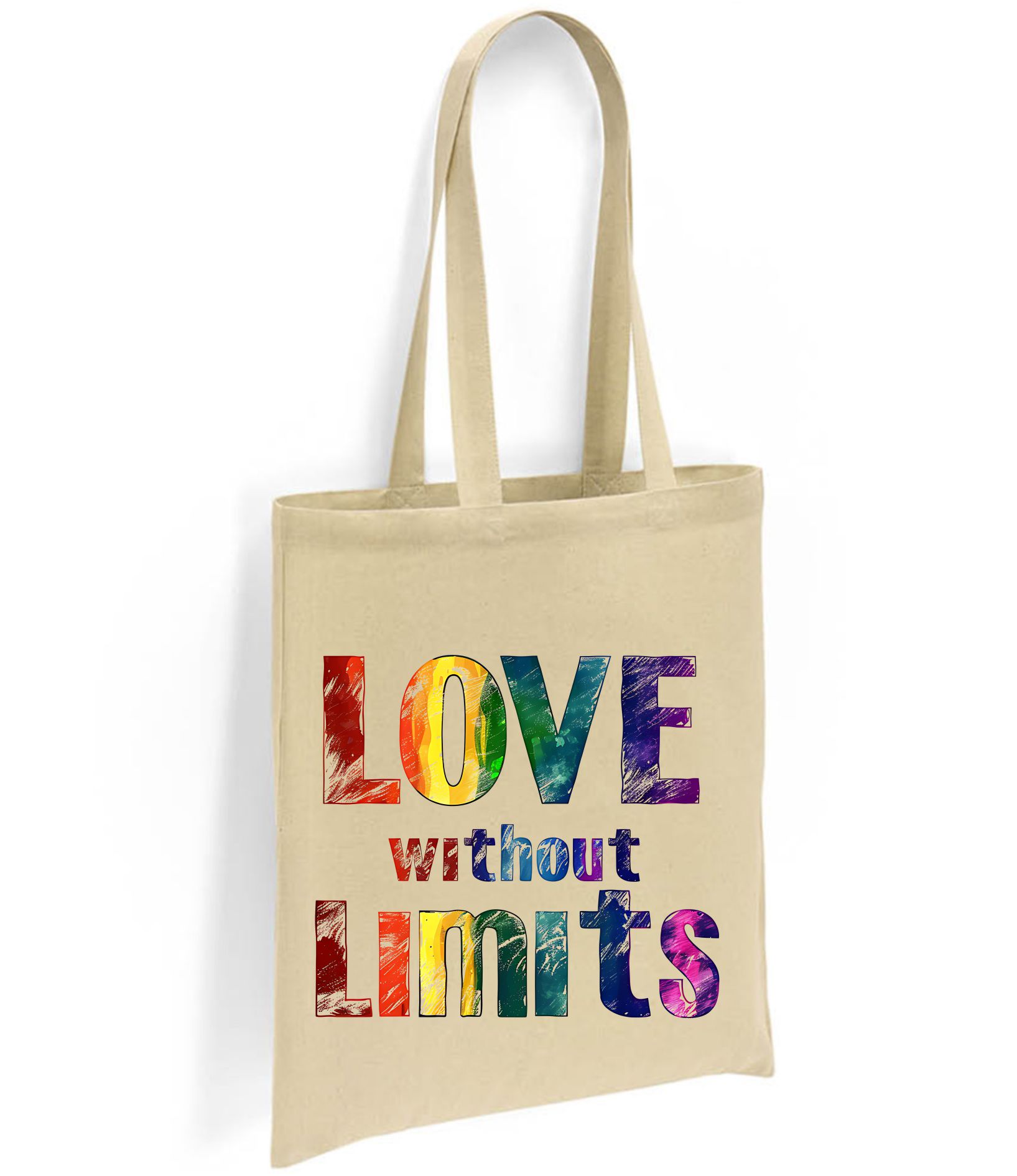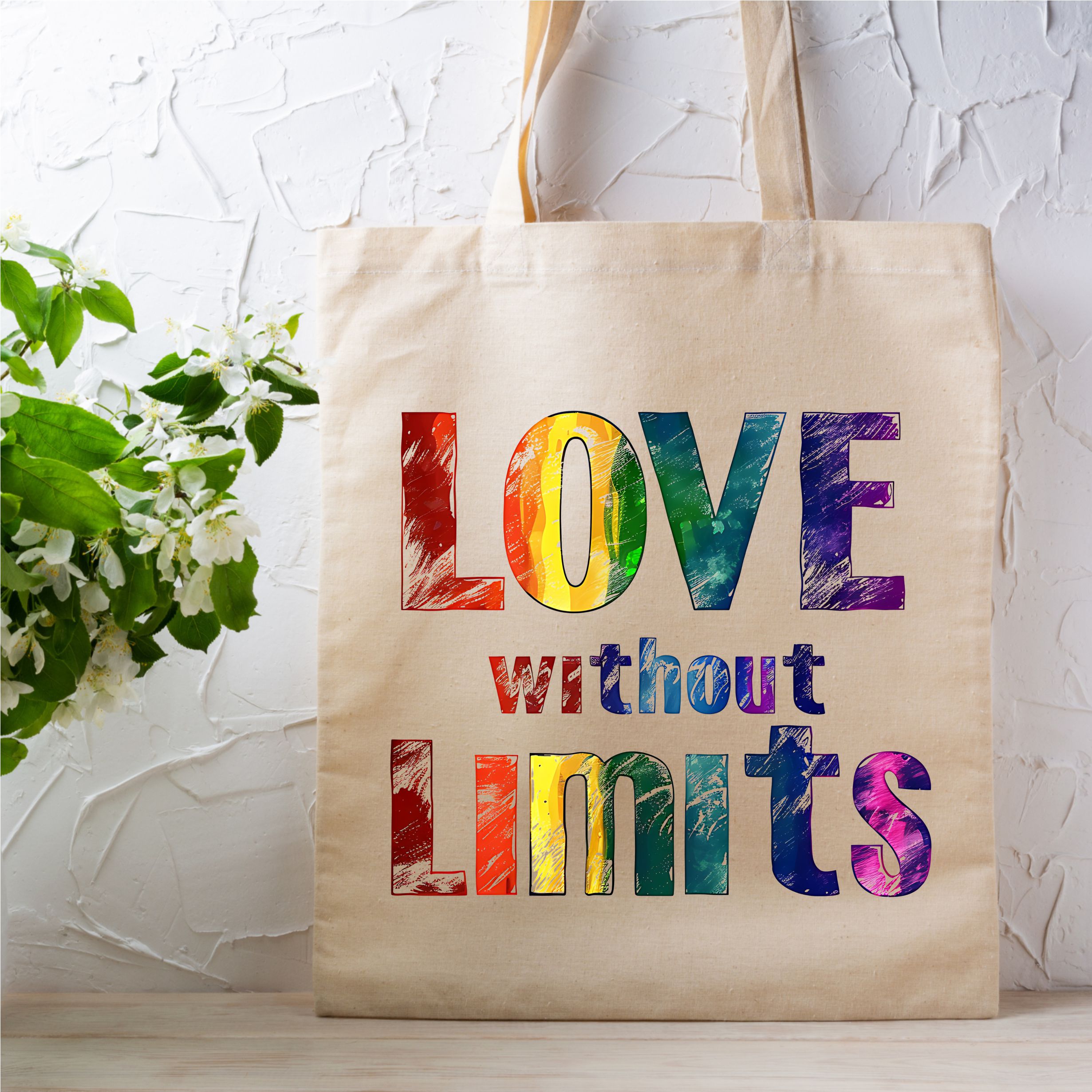 Love Without Limits Tote Bag – Equality Pride Graphic Reusable Canvas Shopper, Bold LGBTQ+ Gift for Everyday Use