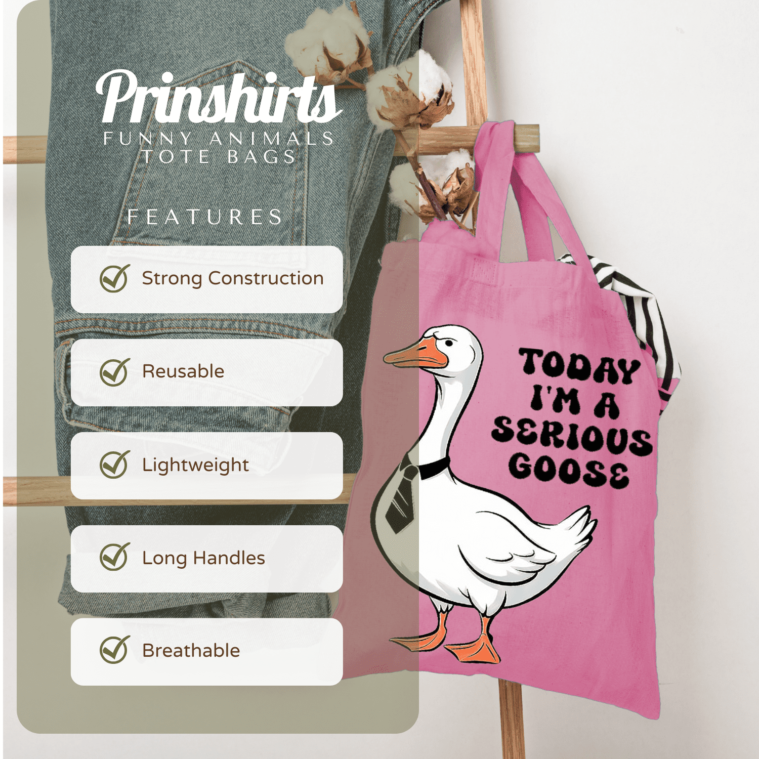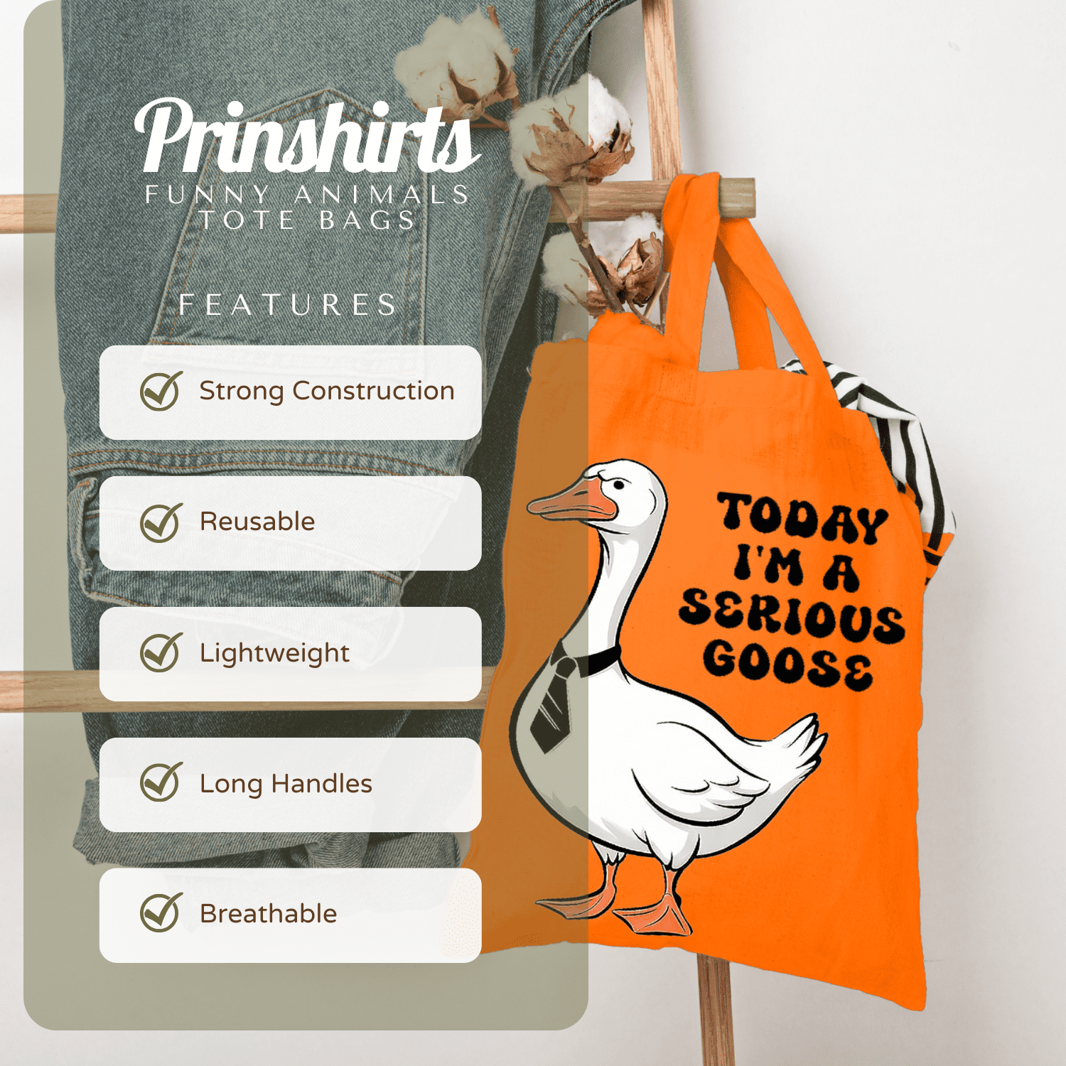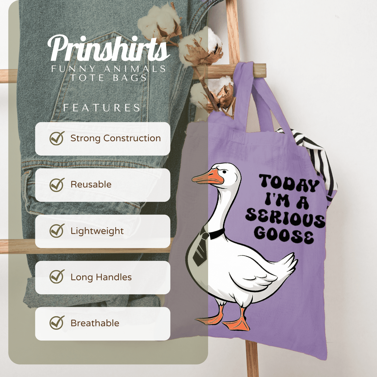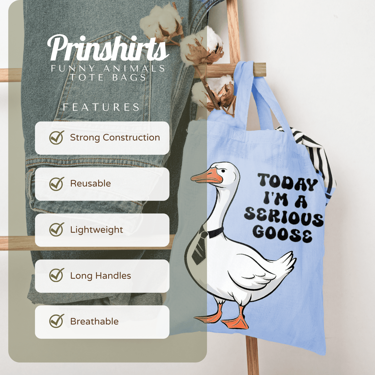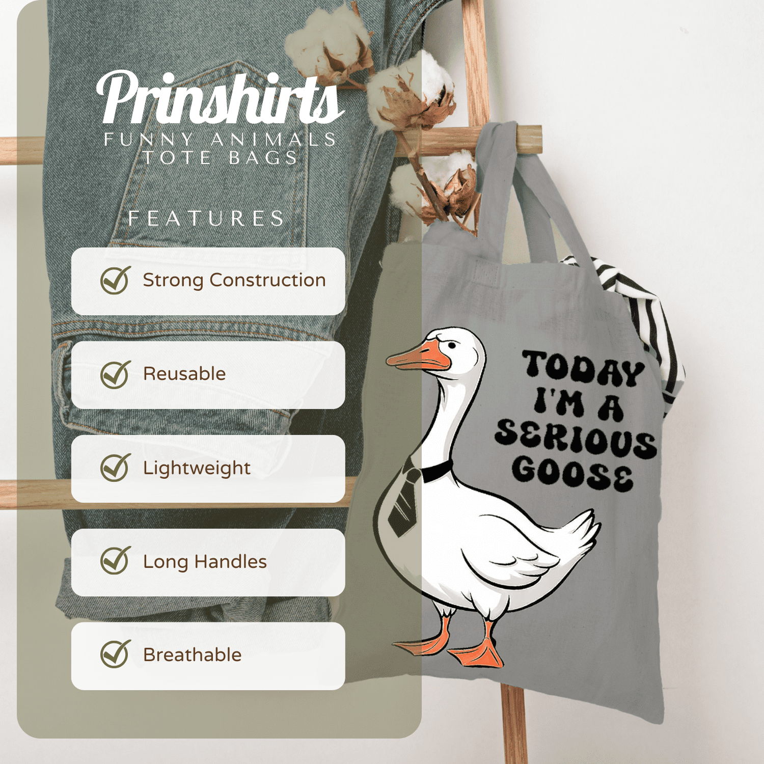 Serious Goose Tote Bag – Funny Cartoon Goose Graphic Bag for Summer, Beach, Work, School, Shopping & Everyday Use dependable everyday tote that lasts well beyond one outing. The bold animal artwork stands out, the cotton build is lightweight yet sturdy, and it folds flat into a drawer, glove box or hallway basket until the next adventure.
