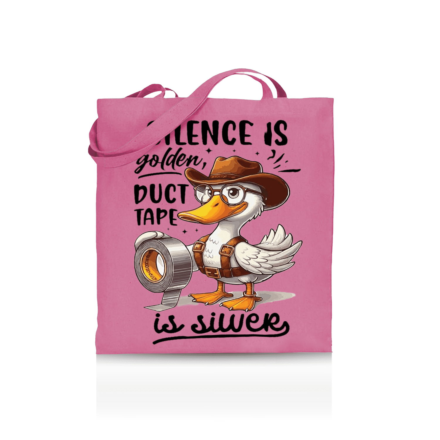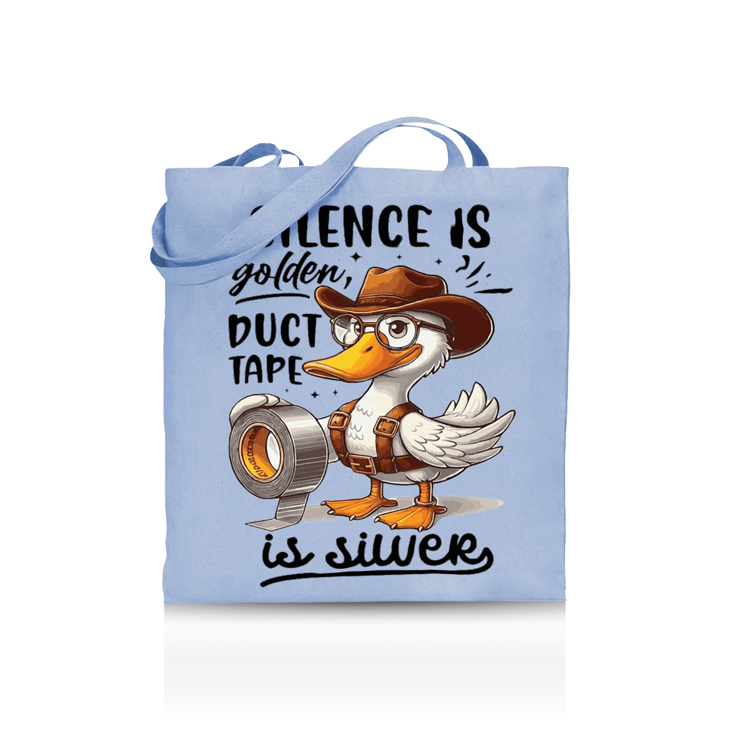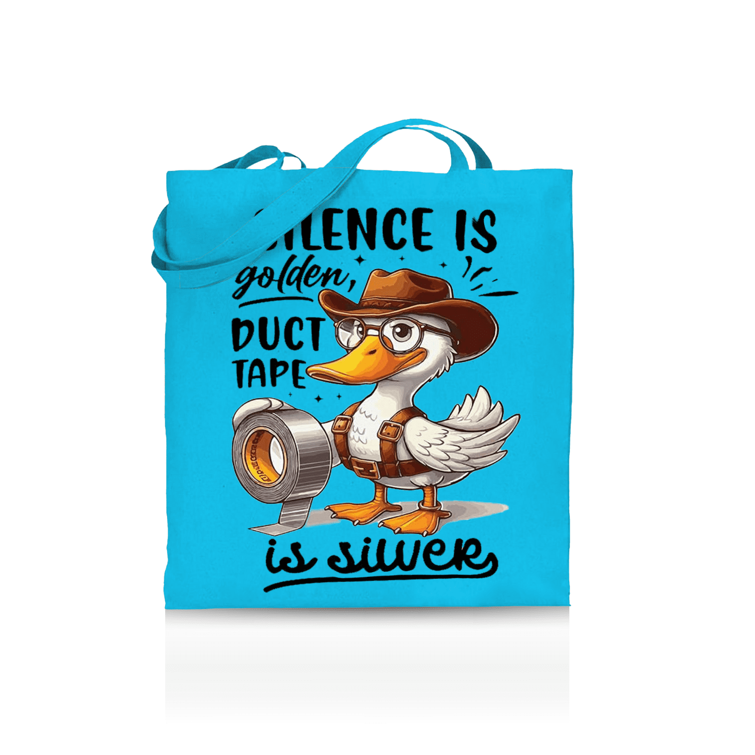 Silence Is Golden Duct Tape Is Silver Tote Bag – Funny Duck Cartoon Graphic Bag for Summer, Beach, Work, School, Shopping & Everyday Use dependable everyday tote that lasts well beyond one outing. The bold animal artwork stands out, the cotton build is lightweight yet sturdy, and it folds flat into a drawer, glove box or hallway basket until the next adventure.