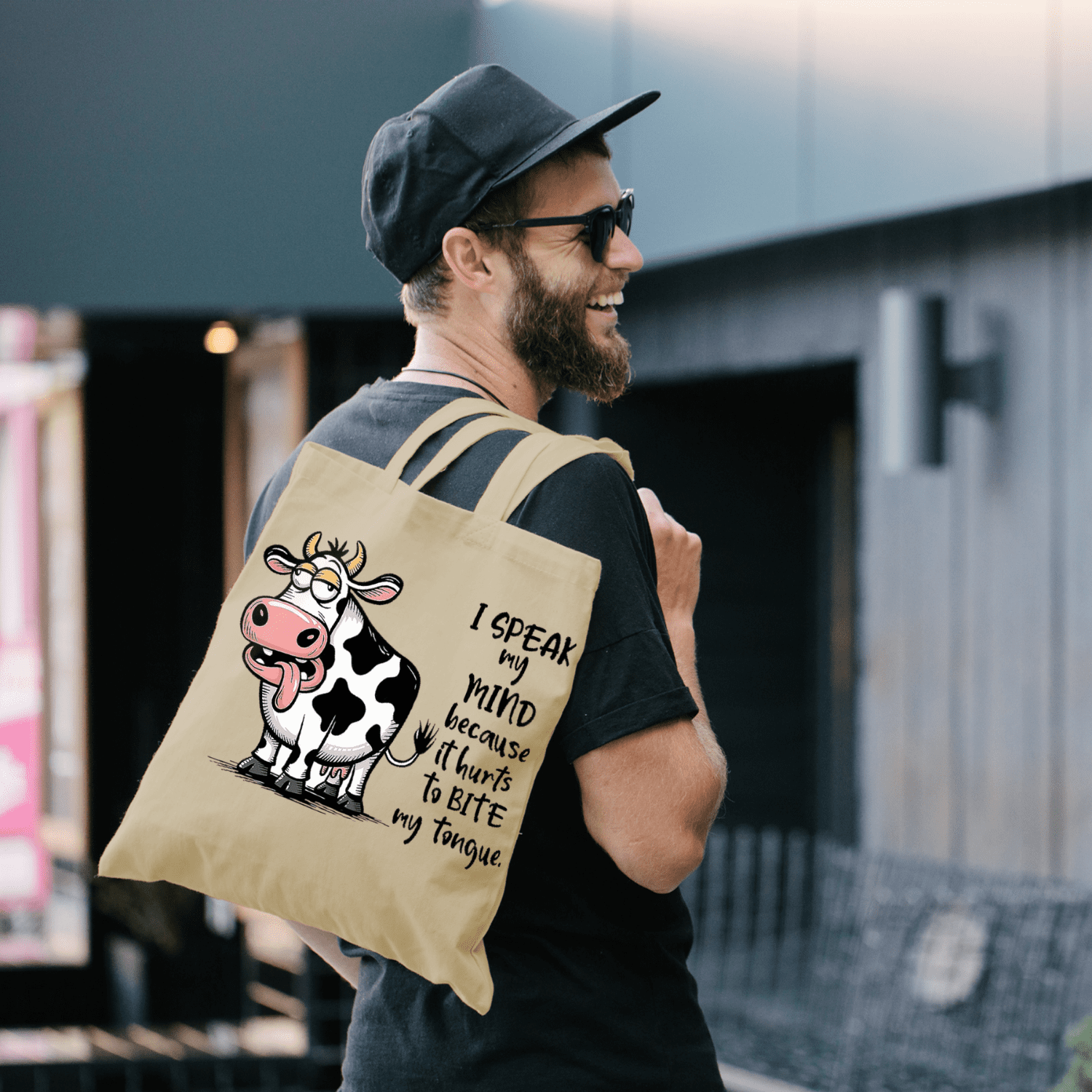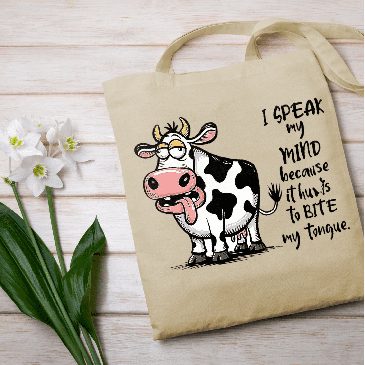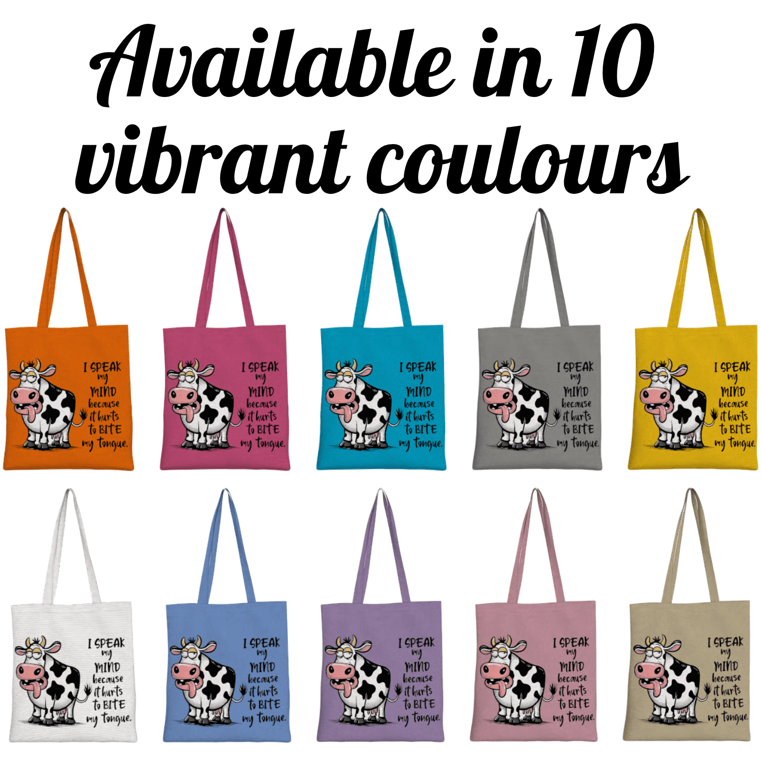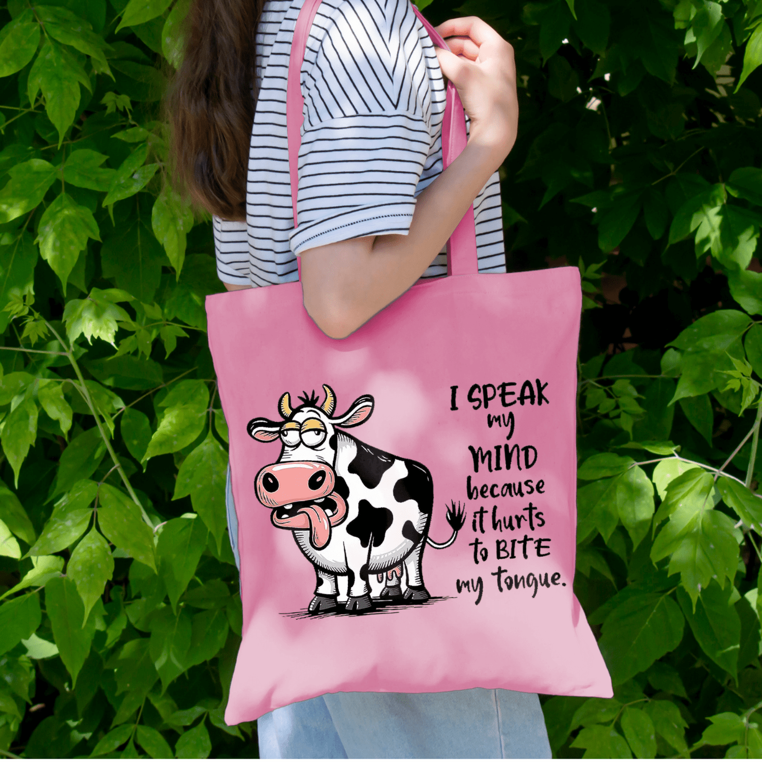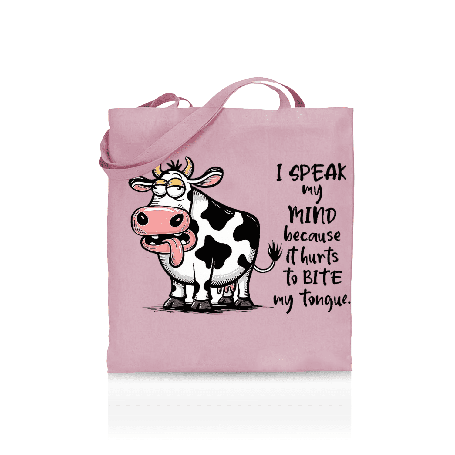 Speak My Mind Cow Tote Bag – Funny Cartoon Cow Graphic Bag for Summer, Beach, Work, School, Shopping & Everyday use dependable everyday tote that lasts well beyond one outing. The bold animal artwork stands out, the cotton build is lightweight yet sturdy, and it folds flat into a drawer, glove box or hallway basket until the next adventure.