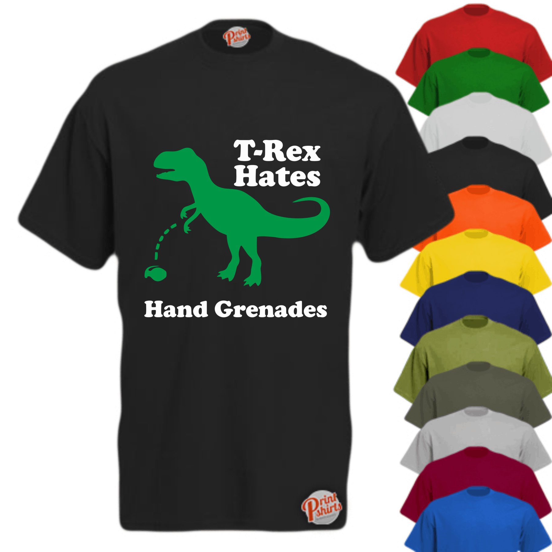 T-rex hates hand grenades! Take a look at this funny T-Shirt ideal for those with a great sense of humour! You put on this hilarious and humorous printed top and let the good times roll! T-shirts for all men and women. A cheap and affordable price! Perfect for people of all ages. Available in multiple colours. Available in all years. Crack an silly joke or two, be greeted with mischievous giggles in a tee to match! Whether it’s at a family gathering, lunchtime at work, or just down the local pub with the lads, this tummy tickling styled top is bound to make people start laughing out loud uncontrollably! Get your, “T-rex hates hand grenades!” Printed t-shirt right this second! So make sure you don’t miss out!