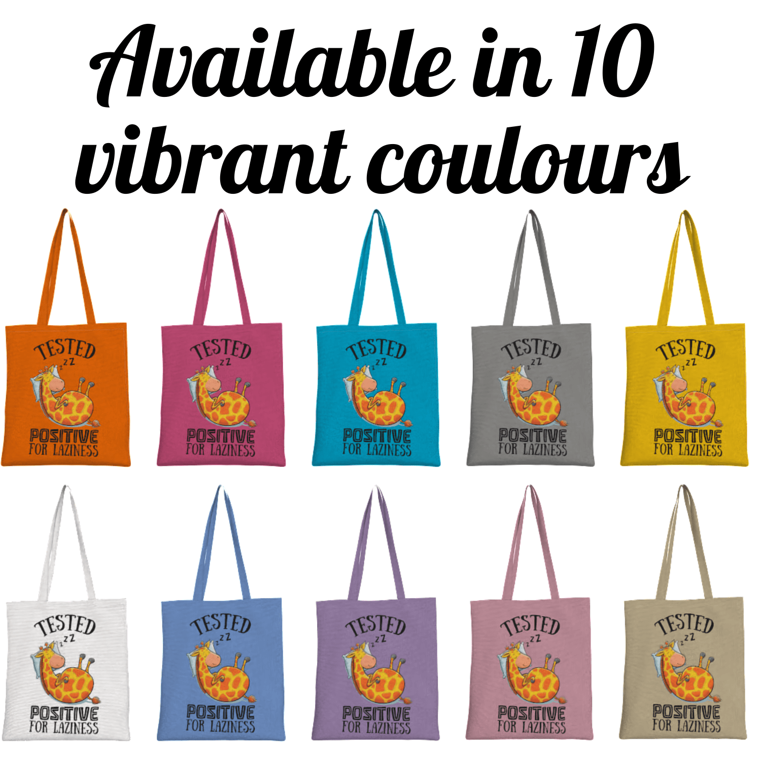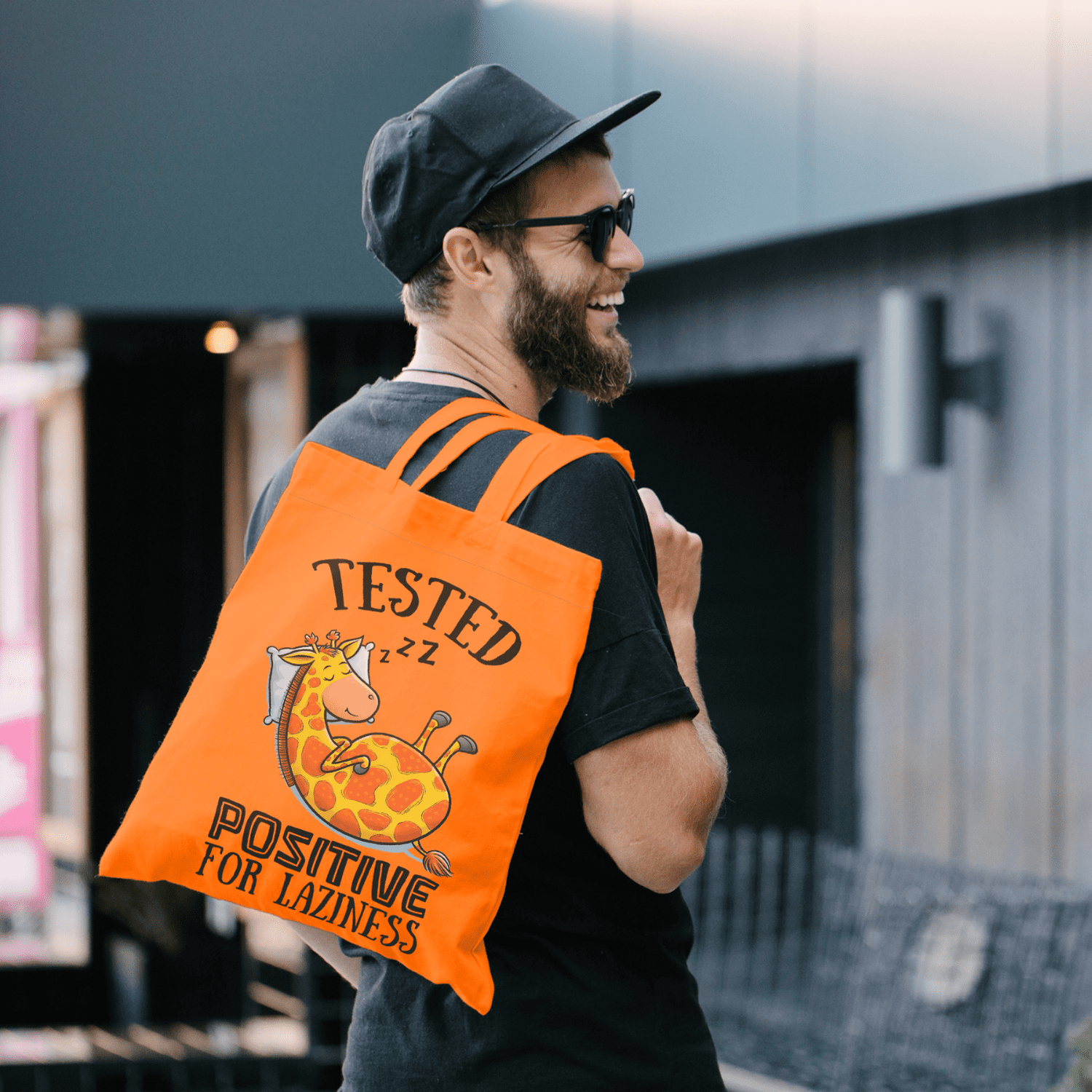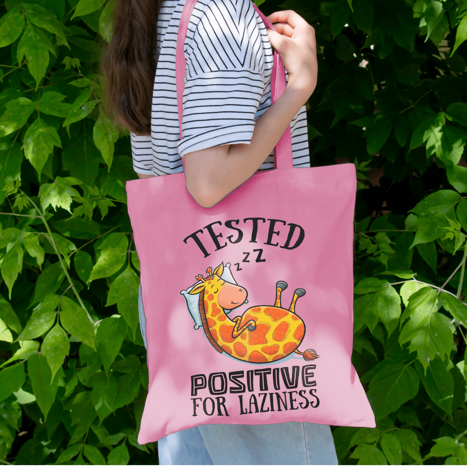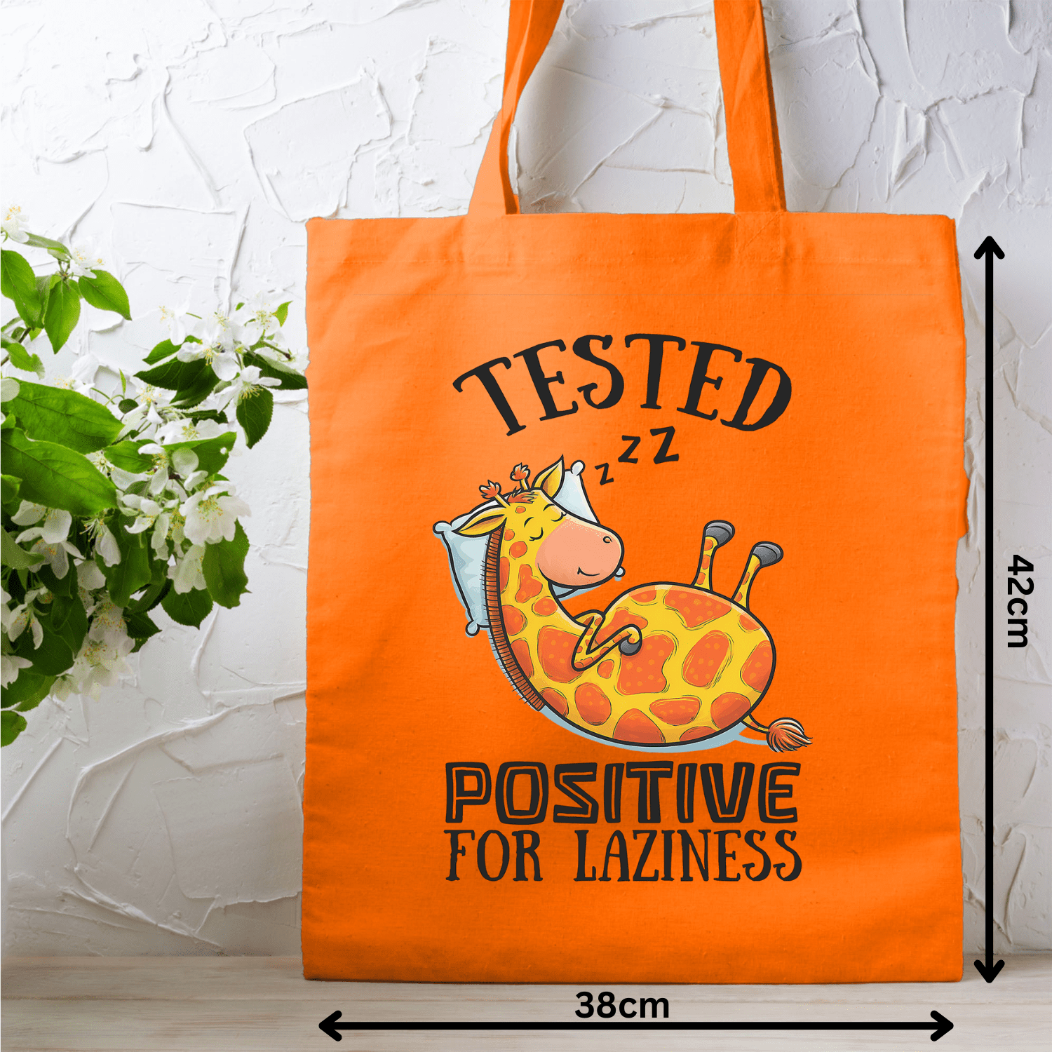 Tested Positive for Laziness Tote Bag – Funny Sleeping Giraffe Cartoon Reusable Shopper, Cute Animal Eco Friendly Bag Gift for Lazy People and Everyday Use – Cartoon Graphic Bag for Summer, Beach, Work, School, Shopping & Everyday use dependable everyday tote that lasts well beyond one outing. The bold animal artwork stands out, the cotton build is lightweight yet sturdy, and it folds flat into a drawer, glove box or hallway basket until the next adventure.